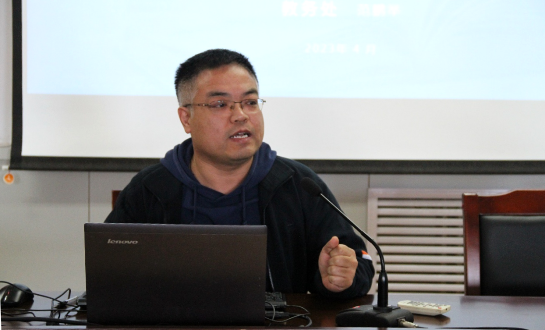 教務處范鵬舉老師介紹教務業務流程并進行“一網一平臺”使用培訓。